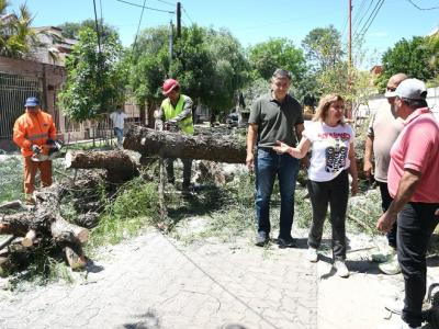 La intendente, Ing. Norma Fuentes, destacó el trabajo del personal municipal que desplegó un amplio operativo para resolver los daños producidos por los fuertes vientos que ocurrieron en la ciudad durante la madrugada.
