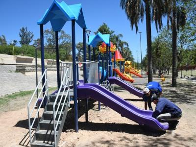 Siguiendo con el plan de mantenimiento de los espacios verdes, la Municipalidad de la Capital realiza trabajos de mejoras en el Parque de los Niños ubicado en el Parque Aguirre.