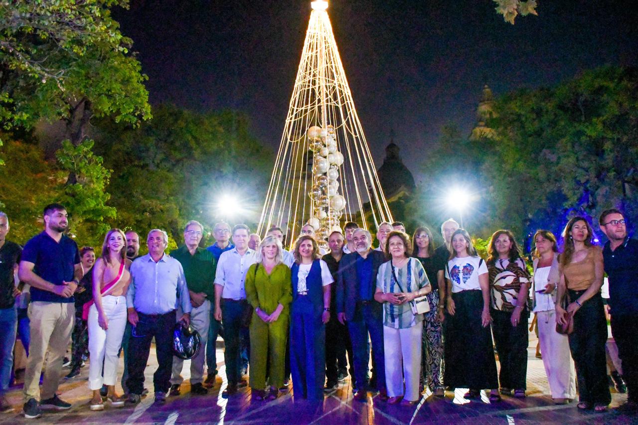 Acompañada por una importante cantidad de vecinos, la intendente, Ing. Norma Fuentes, encabezó el encendido de luces ornamentales de la plaza Libertad, del microcentro, de las principales avenidas y del tradicional árbol de navidad ecológico ubicado en la explanada de la Municipalidad de la Capital.
