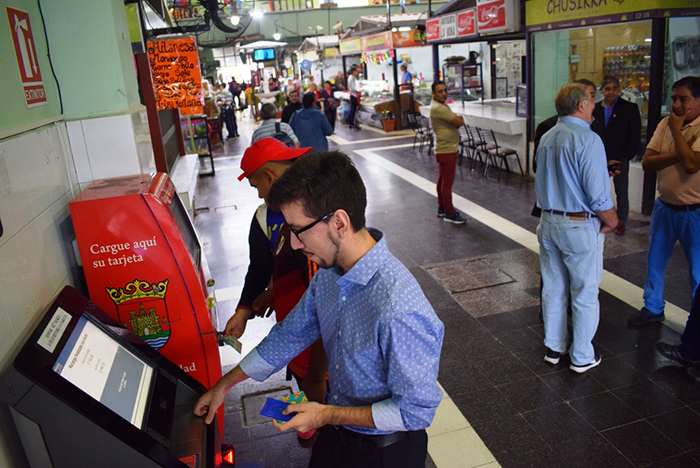 El sistema es simple y guía al usuario paso a paso: una vez elegida la opción de carga, cada usuario deberá insertar la tarjeta en una ranura o apoyarla en un lector digital para, seguidamente, colocar en otra abertura el billete con el monto que desea ingresar.